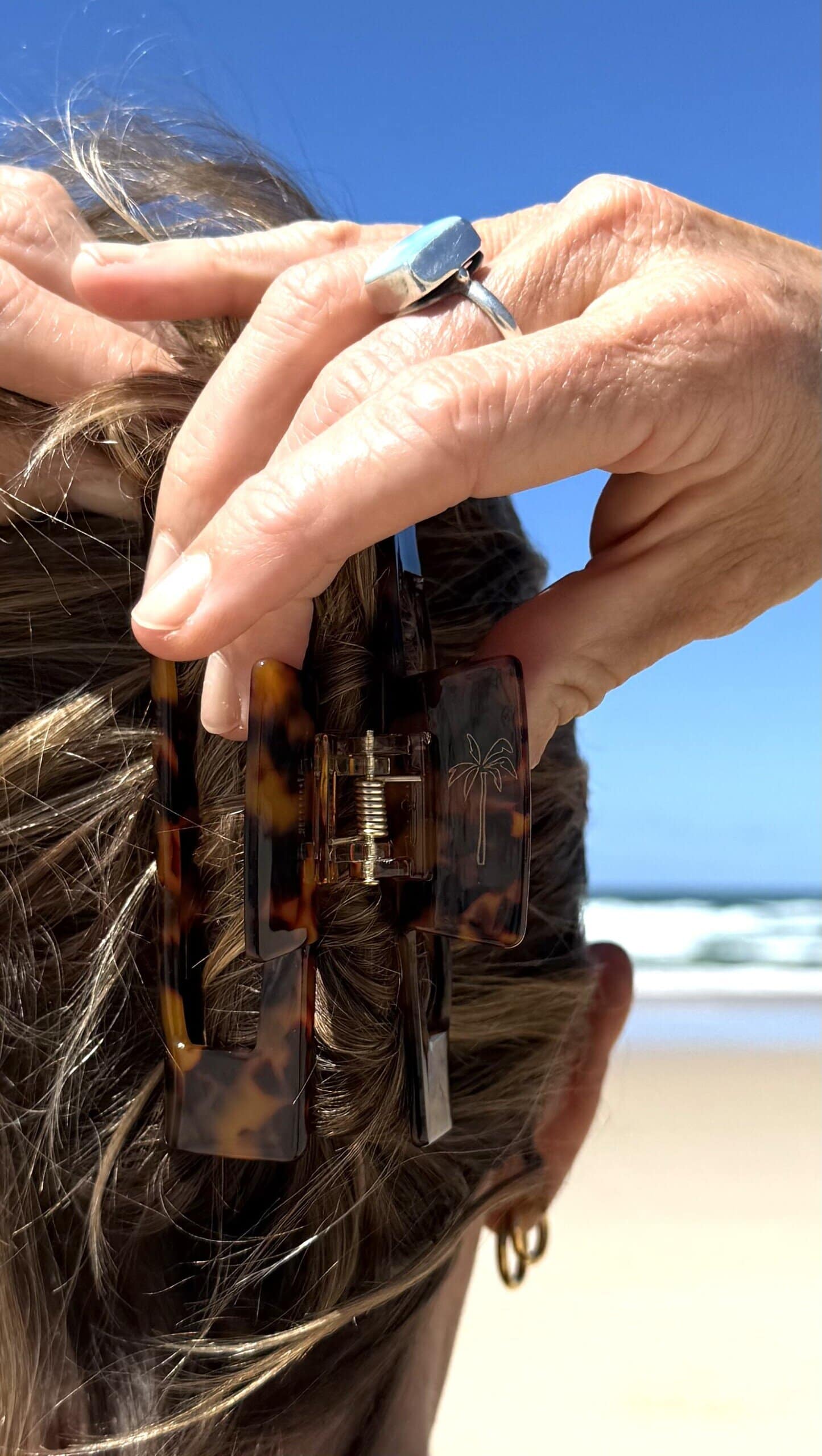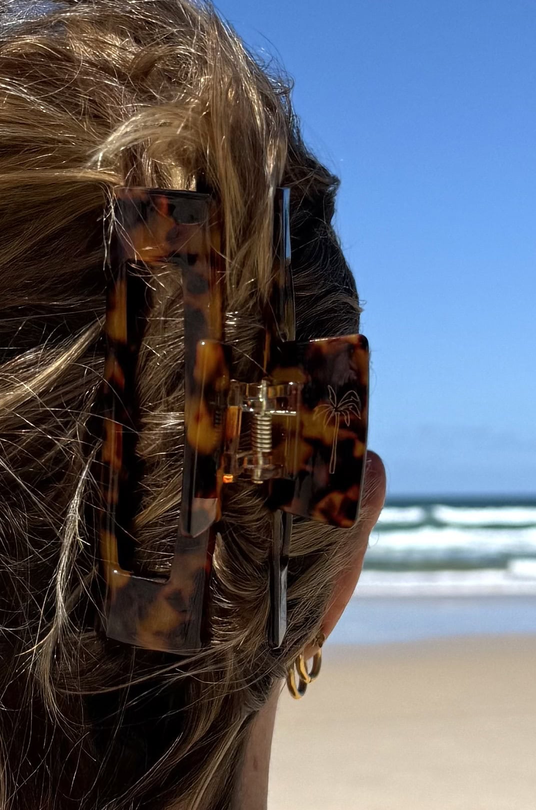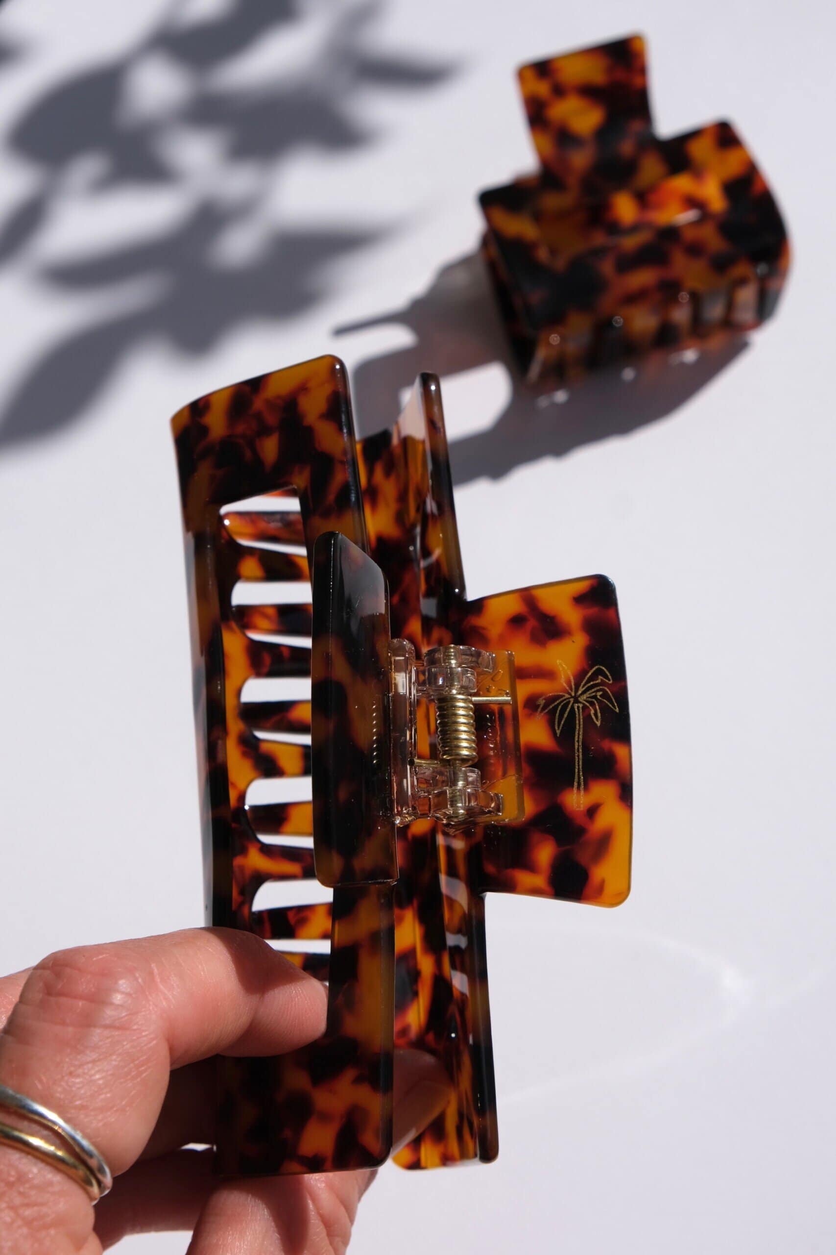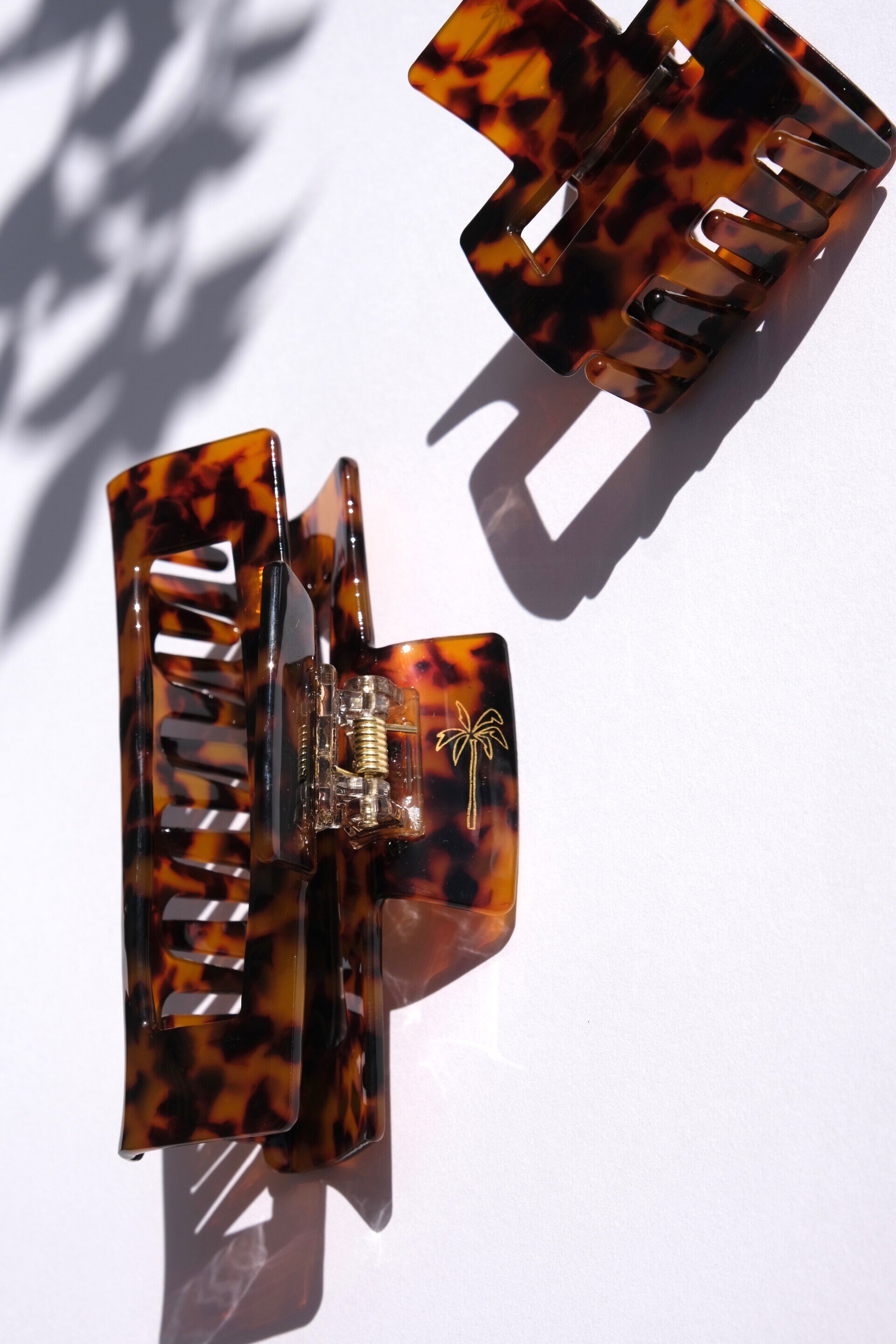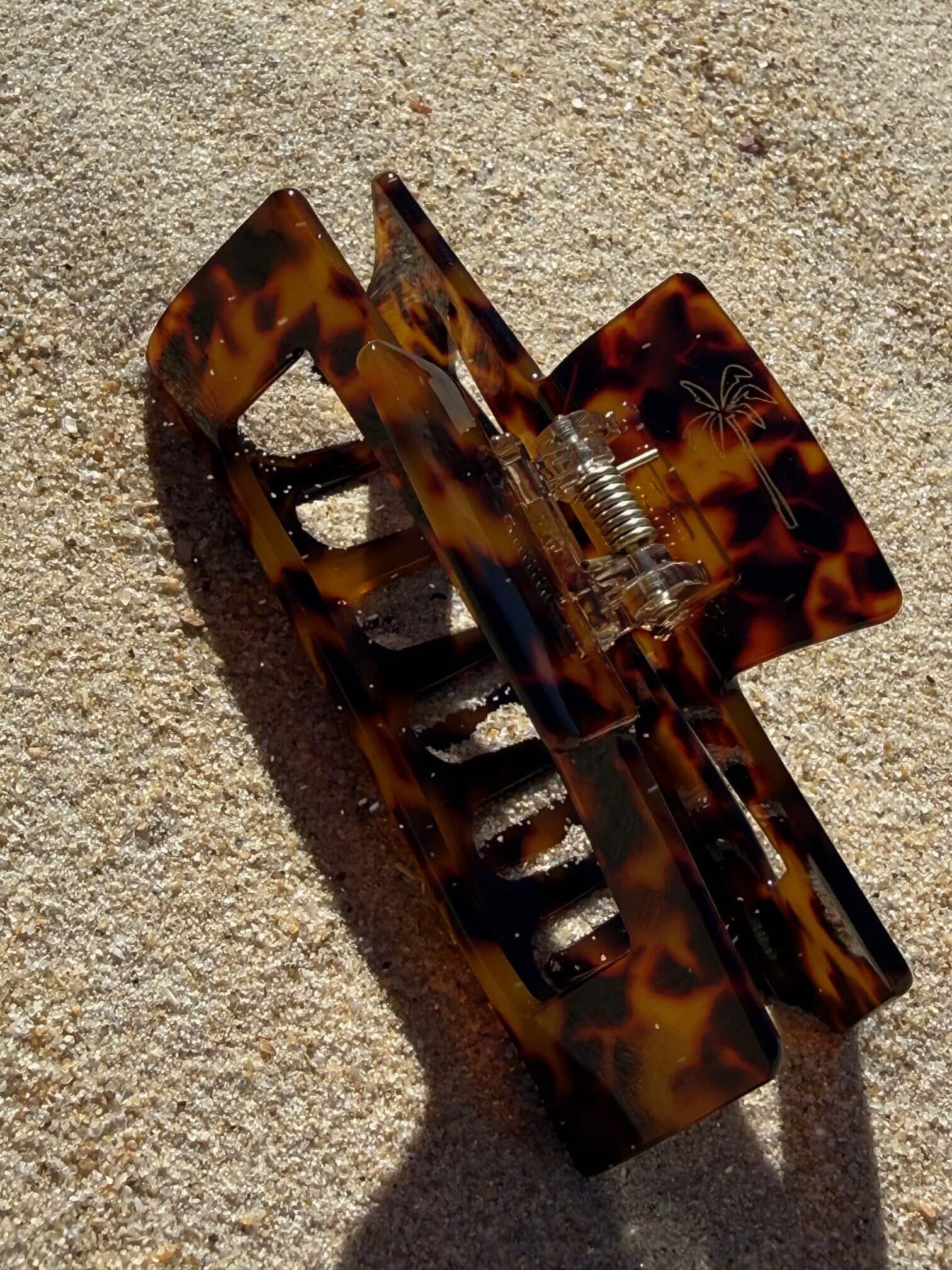 Crafted in a classic tortoise shell finish with a gold debossed palm.